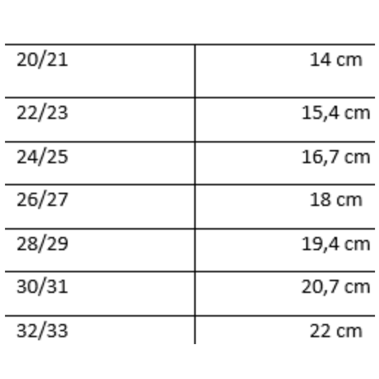 | Tamanhos | 32/33, 22/23, 30/31, 26/27, 28/29, 24/25, 20/21 |