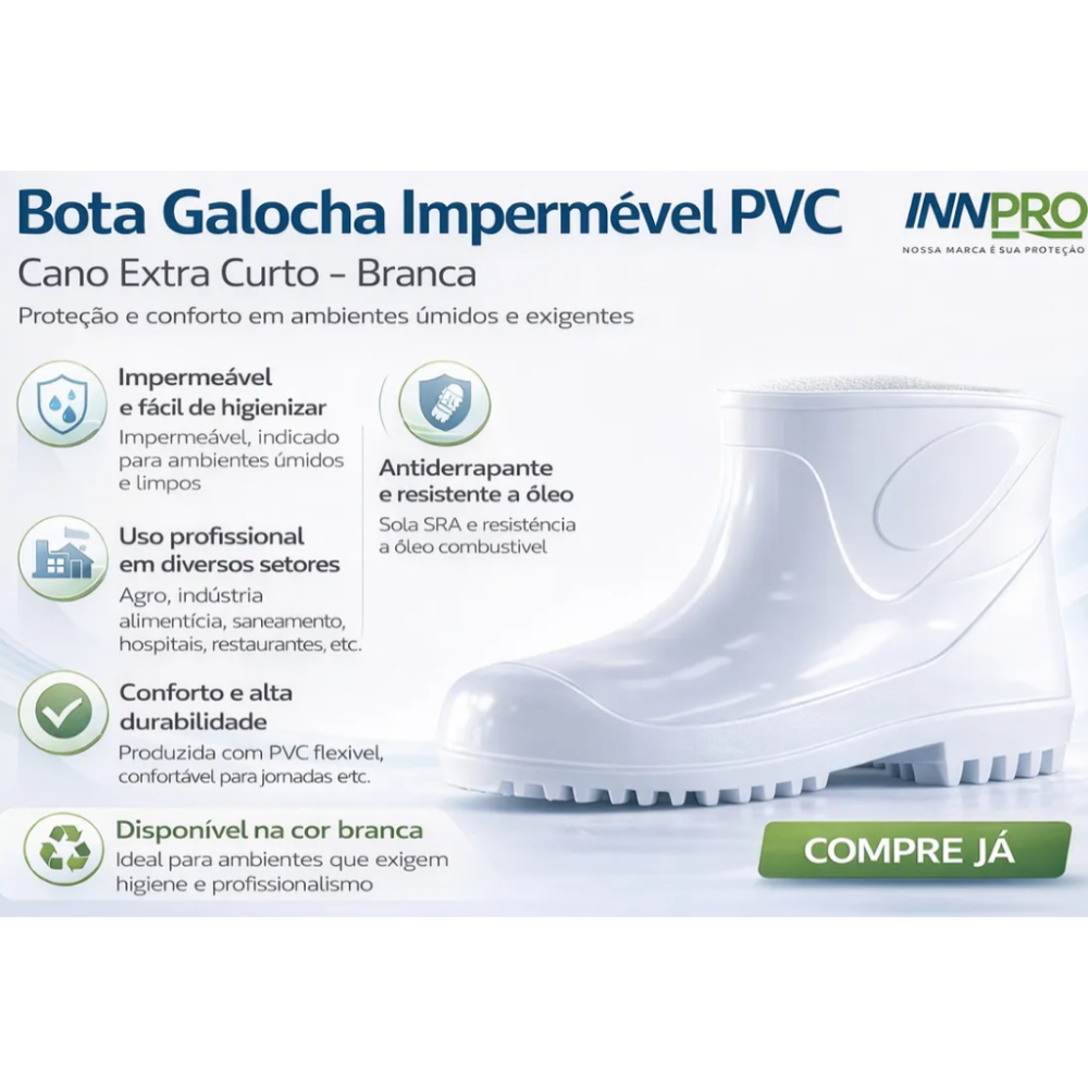 Bota Galocha PVC Branca ou Amarela Impermeável Antiderrapante CA 40681 uso Doméstico ou Profissional