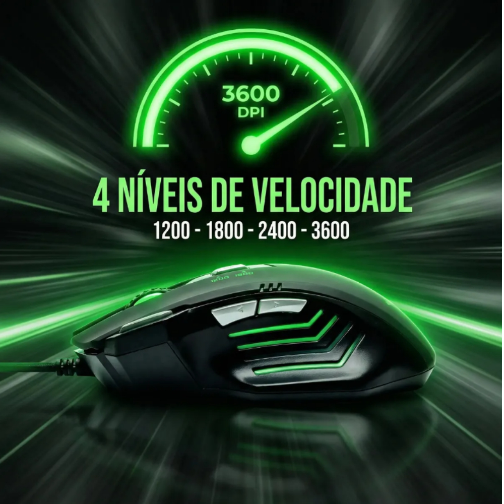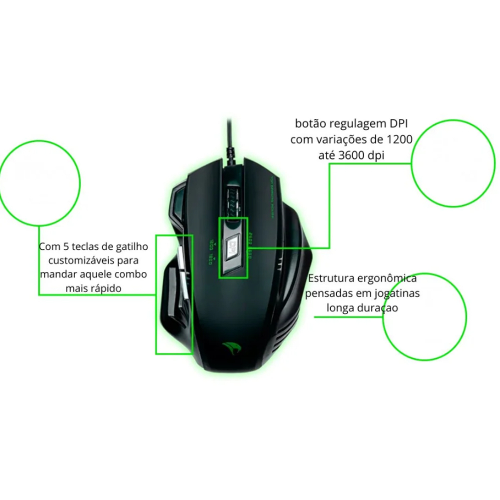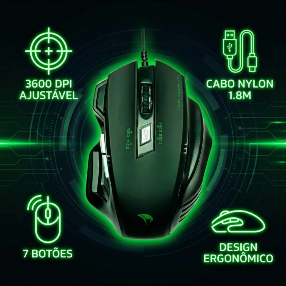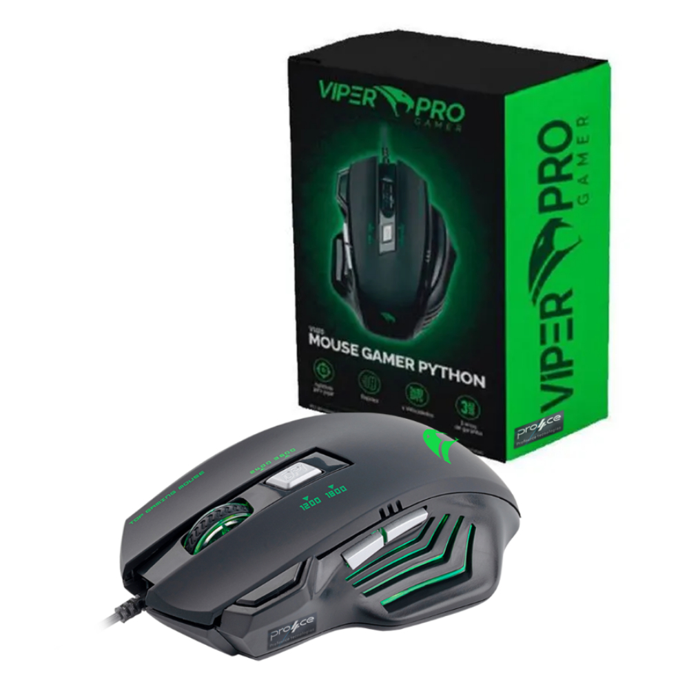Mouse Gamer Viper Pro Python 7 Botões 3600 DPI USB Cabo Nylon Reforçado Alta Precisão Disparo Duplo