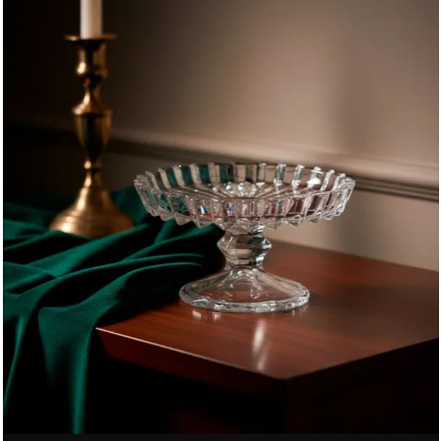 O Prato com Pé Geneva em Cristal (14cm x 14cm x 8cm), assinado pela prestigiada marca Wolff, é a personificação do equilíbrio entre a delicadeza do cristal e a funcionalidade do design moderno.